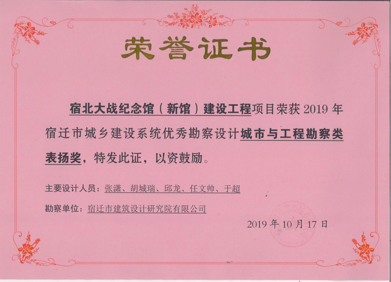 2、宿北大戰紀念館(新館)建設工程 城市與工程勘察類表揚獎