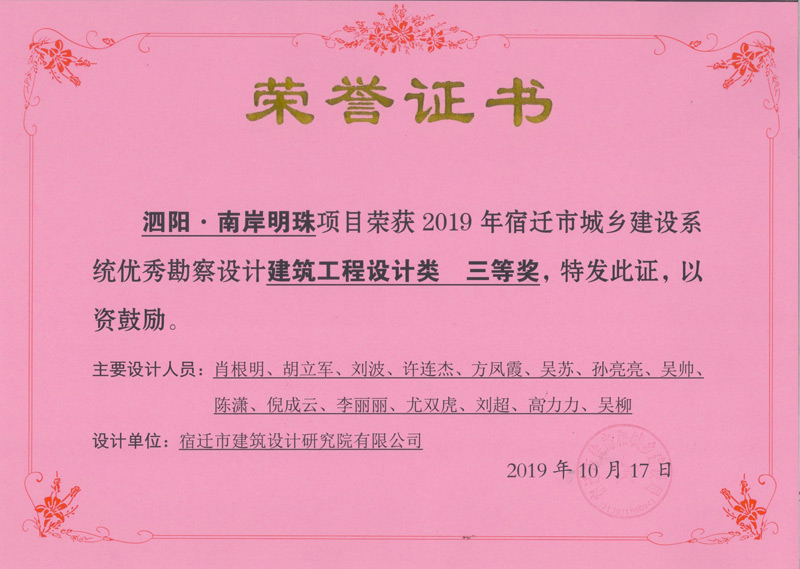 1、泗陽 南岸明珠 榮獲建筑工程設計類 三等獎